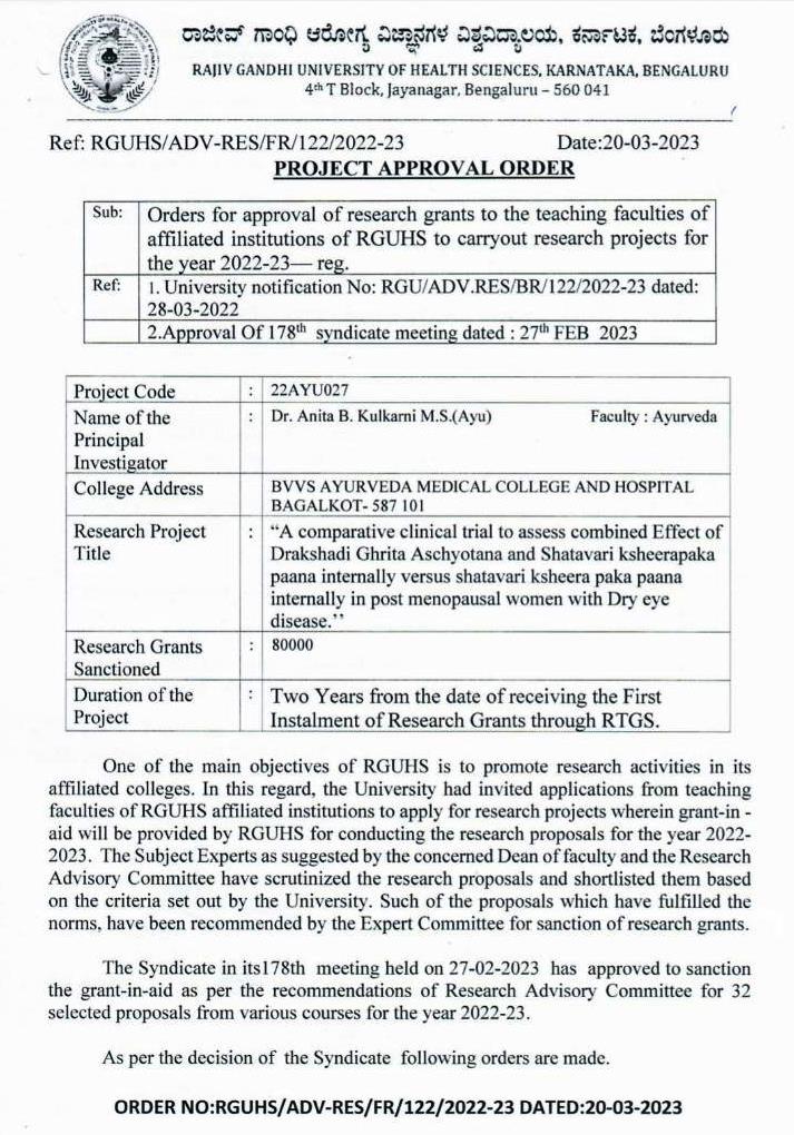 Affiliated to Rajiv Gandhi University of Health Sciences Karnataka, Bangalore, Recognised by Govt of Karnataka Bangalore & NCISM, New-Delhi